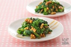 菜の花 80gくるみ 10gAうま味調味料「味の素®」 少々Aみりん 大さじ1/2Aみそ 小さじ1A「AJINOMOTO ごま油好きの純正ごま油」 小さじ1 カロリー:約87kcal 味の素 レシピ大百科