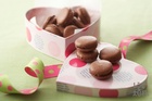 (1)クッキングシートに直径4cmの円を24個描いて天板にのせ、上にもう1枚クッキングシートをのせる。Aは合わせてふるい、冷蔵庫で冷やしておく。(2)マカロンを作る。ボウルに卵白を入れ、グラニュー糖を3回に分けて加えながら泡立て器(ハンドミキサー)で泡立て、しっかりしたメレンゲを作る。(3)(1)の粉類を2回に分けて加え、ゴムベラで混ぜる。混ざったら生地をボウルにこすりつけるようにしてのばし、底からすくって生地を返す。これを10回繰り返す。(4)丸口金をつけた絞り袋に入れ、(1)の天板に描いた円の内側にしぼり出し、そのまま室温に30分ほど置く(時間外)。 カロリー:約105kcal