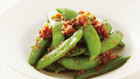 スナップえんどうは両側の筋を除く。フライパンにサラダ油を中火で熱し、**1** を入れてサッと炒める。【A】を順に加え、削り節の1/2量を加えて混ぜ、ふたをして3~4分間煮る。ふたを外し、汁けがほとんどなくなるまで煮詰める。残りの削り節を加えて混ぜる。 ・スナップえんどう 20~25コ・削り節 1袋・サラダ油 大さじ1/2・水 大さじ2~3・酒 大さじ1・みりん 大さ・・・ 調理時間:約10分 カロリー:約110kcal