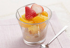 (1)ゼラチンは分量の水にふり入れ、ふやかす。マンゴーは5mm角に切る。(2)鍋にAを入れて火にかけ、温まったら火を止めて、「パルスイート」、(1)のゼラチンを加えて溶かす。生クリームを加えて混ぜ、器に等分に流し入れ、冷蔵庫で冷やし固める(時間外)。(3)(2)が固まったら、(1)のマンゴーをのせ、ミントの葉を飾る。*ココナッツミルクは分離しやすいので、よく混ぜて・・・ カロリー:約199kcal