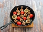 マッシュルームの軸を手でパキっと折って取り除き、オリーブオイルをひいたスキレットに並べる。空いたところにミニトマトを加える。STEP1で取り除いた軸・ベーコンをみじん切りにし、マッシュルームの傘の内側に入れ、「ヤマサ ぱぱっとちゃんと これ!うま!!つゆ」をかける。スキレットの淵から白ワインを注ぎ入れる。蓋して中火で4~5分蒸す。火が通ったら火か・・・ 調理時間:約10分 カロリー:約101kcal 塩分:約1.0g
