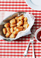 下準備 ・じゃが芋を耐熱容器に入れてふんわりとラップをかけ、電子レンジで加熱しておく(600W約4分)。 1. ボウルに半量のじゃが芋を入れて粗くつぶし、残りのじゃが芋・≪a≫を加え、よく混ぜる。 2. 12等分にし、俵型に形をととのえる。 3. 180℃の揚げ油できつね色になるまで揚げる。 4. 器に盛り付け、トマトケチャップを添える。 じゃが芋(5㎜角) 400g[a] 片栗粉 小・・・ 調理時間:約20分 カロリー:約123kcal