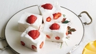 寒天は水で洗い、固く絞ってから水カップ1+1/3につける。寒天がふやけたら絶えず混ぜながら煮溶かし、完全に溶けたら、砂糖を入れて煮詰め、少し冷ましておく。別に卵白を手早く泡立て、冷め加減の寒天液を少量ずつ流し入れながら、よく混ぜる(真っ白いつやのあるクリーム状のものができる)。いちごは塩水でよく洗い、ヘタを取って**3**の中に混ぜ合わせ、手早く・・・ 調理時間:約20分 カロリー:約120kcal 塩分:約0.1g