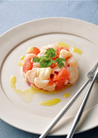 下準備 ・ほたて貝柱は1.5cm角位に切っておく。 ・グレープフルーツは塩(材料外)でこすり洗いし、皮・薄皮を除いて房取りし、1.5cm角位に切っておく。 ・紫玉ねぎは水にさらし、水気を切っておく。 1.ボウルに《a》を入れ混ぜ、エキストラバージンオリーブオイルを少しずつ加えながら混ぜる(ドレッシング)。 2.紫玉ねぎを加え混ぜる。 3.【2】のボウルにほたて貝柱・グ・・・ 調理時間:約15分 カロリー:約134kcal