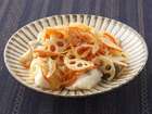 玉ねぎは薄切り、レンコンは半月の薄切り、にんじんはせん切りにする。たらは半分に切り、塩・こしょう、薄力粉をはたく。フライパンを中火で熱し、ごま油大さじ1で表裏3~4分ずつ焼いて皿に盛りつける。Aは合わせておく。フライパンにごま油大さじ1を中火で熱し、STEP1を2分炒める。STEP3をまわし入れ、ひと煮たちしたら、よく混ぜたBをまわし入れて、とろみがつい・・・ 調理時間:約30分 カロリー:約209kcal 塩分:約2.2g