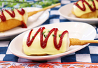 1. アメリカンドッグにしゃぶしゃぶ餅とスライスチーズをのせ、皿に盛る。 2. ラップをせず、電子レンジ(600W)で50秒加熱する。 3. ケチャップをかけ、お好みでパセリをふる。 ※電子レンジで加熱する際、倒れやすいのでご注意ください。 アメリカンドッグ6本入り 1本 しゃぶしゃぶ餅 1枚 スライスチーズ 1枚 ケチャップ 適量 パセリ お好み 調理時間:約10分 カロリー:約242kcal 塩分:約1.1g