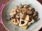 ごぼう、れんこん、さつまいもはそれぞれ皮付きのまま、厚さ1cmのいちょう切りにして水にさらす。ざるにあげてペーパーでしっかりと水気を切る。Aは大きめのボウルに合わせておく。フライパンにSTEP1の野菜と、ローズマリー(大きければ2〜3等分に切る)を入れて、野菜がかくれるまで油を入れる。弱めの中火にかけ、ときどき返しながら15分前後かけて野菜が柔らかく・・・ 調理時間:約25分 カロリー:約371kcal 塩分:約1.4g