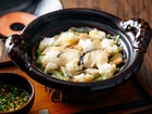 たらは食べやすい大きさに切り、白菜も同様に切っておく。土鍋に白菜を下に敷いてから鱈の切り身をのせて、酒・水・「ヤマサ ぱぱっとちゃんと これ!うま!!つゆ」を振りかけて蓋をし、弱火で土鍋を温めてから強火にし、蓋の穴から蒸気が出てから10分程度蒸し煮にする。たらに火が通っていたら、大根おろしをちらし、もう一度蓋をして軽く蒸したら完成。とんすい・・・ 調理時間:約30分 カロリー:約175kcal 塩分:約2.2g