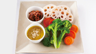 にんじん1本はよく洗い、皮つきのまま2cm厚さの輪切りにする。れんこん1/2節は皮をよく洗い、皮つきのまま1cm厚さの輪切りにする。小さめのフライパンに**1**を並べ入れ、水カップ1/2を注ぐ。ふたをして中火にかけ、煮立ったら弱火で12~14分間蒸しゆでにする。火を止め、そのまま3~5分間おいて蒸らし、水けをきる。ブロッコリー1/4コは茎ごと小房に切り分ける。鍋に・・・ 調理時間:約25分 カロリー:約130kcal