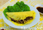 [生地]を作ります。ボウルに小麦粉・米粉・片栗粉・塩・ターメリックを入れて混ぜ、さらに水を加えてよく混ぜ合わせます。フライパンに油を熱し、牛肉を炒め、たまねぎともやしを加えて炒め合わせ、「黄金の味」を加えて汁気がなくなるまで炒めます。フライパンに再び油を熱し、(1)を1/3量入れて薄くのばし、(2)を1/3量のせて2つ折りにします。残り2つも同様に作り・・・ 調理時間:約30分 カロリー:約324kcal
