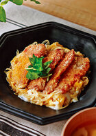 下準備 ・薄力粉・水は混ぜ合わせておく(練り粉)。 1.ストックポークはスプーンでひと口大にそぎ、練り粉・パン粉の順に衣をつける。 2.フライパンにサラダ油を熱し、【1】を入れ、両面焼き色をつけるように揚げ焼きして取り出し、油を切る(ポークカツ)。 3.別のフライパンに《a》・玉ねぎを入れ加熱し(強火)、沸騰したら弱火にし、玉ねぎに火を通す。 4.ポークカツ・・・ 調理時間:約20分 カロリー:約489kcal