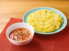 中華麺をゆで、冷水でしめる。「ヤマサ 饂飩(うどん)気分 麻辣(マーラー)まぜ麺」を豆乳で割る。お好みでごまや青ねぎを添え、中華麺をつけていただく。