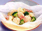 材料(2人前) サーモン 1切れ 塩 適量 こしょう 適量 あさり 200g ミニトマト 8個 しめじ 1/2袋 玉ねぎ 1/2個 オリーブ油 大さじ2 A割烹白だし 大さじ2 A水 150ml イタリアンパセリ 適量 レモン 適量
