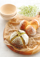 残りの生地を広げ、《c》を生地全体に広げ均一に混ぜ込み、丸めてとじめを下にしてボウルに入れる(抹茶生地) [a] 強力粉 160gの1/2[a] インスタントドライイースト 小さじ1[a] 砂糖 大さじ1・1/2[a] スキムミルク 大さじ1仕込み水 100~110cc[b] 強力粉 160gの1/2[b] 塩 小さじ1/3(2g)[b] バター(食塩不使用) 20g[c] 抹茶 小さじ1[c] 水 小さじ1強力粉 大さじ1(10g)クランベリー 20gホワイトチョコチップ 10gかのこ豆 50g 調理時間:約120分