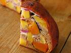 強力粉少々をふった作業台で60gの生地は直径10cmに、100gの生地は直径18cmに、麺棒で円形に薄くのばす。**5**でのばした60gの生地1枚に、かぼちゃ1/2量、さつまいも1/4量を手でつぶしながらのせる。塩少々をふり、チーズ ・ライ麦パン生地 340g・くり 80g・かぼちゃ 80g・さつまいも 80g・ベーコン 8枚・チーズ 80g・強力粉 少々・塩 少々・こしょう 少々 調理時間:約90分 カロリー:約1640kcal 塩分:約7.9g