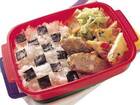 ギョーザの皮と同じ大きさの耐熱容器の1/3の高さになるように、【ミートソース】、【ホワイトソース】、ギョーザの皮2枚の順で入れていき、これを3回繰り返す。最後のギョーザの皮の上に【ホワイトソース】と【ミートソース】を少量のせて粉チーズをふり、オーブントースターで焼き色をつける。ソースが冷たい場合は、 ・牛乳 カップ2+1/2・小麦粉 大さじ3+1/3・バター 大さじ2+1/2・ナツメグ 適宜・ミートソース 適宜・ギョーザの皮 24枚・粉チーズ 適宜・にんじん 1/2本・たまねぎ 1コ・セロリ 1/2本・鶏レバー 50g・ベーコン 80g・トマト 400g・牛ひき肉 500g・赤ワイン カップ1+1/4・ローリエ 1枚・タイム 1枝・サラダ油 大さじ2・塩 少々・こしょう 少々 調理時間:約20分 カロリー:約610kcal