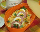 朝のグルメファミリーボロニアソーセージ1/2本冷凍ポテト(シューストリング)100g玉ねぎ1/2個にんじん30gしめじ1パックゆで2個パセリ少々A:マヨネーズ大さじ3A:味噌大さじ1A:卵黄1個A:砂糖少々