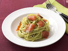 1スパゲッティは塩を加えた熱湯で袋の表示通りゆでる。2スモークサーモンはひと口大に切る。3①にバジルソースと生クリームを和え、②も加えて混ぜる。