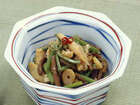 山菜水煮180gこんにゃく100g(1/2枚)油揚げ1枚赤唐辛子1本砂糖大さじ1ごま油大さじ1水100ml(1/2カップ)ヤマサ昆布つゆ50ml(1/4カップ) 調理時間:約15分 カロリー:約84kcal 塩分:約1.4g