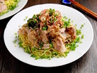 STEP4の上に大根おろし、豚肉、わかめ、みょうが、刻みねぎをのせ、STEP3をかければ完成。 中華麺(生)2袋豚肉(薄切り、しゃぶしゃぶ用)200g酒大さじ2(豚肉用)大根輪切りで10cmほど塩蔵わかめ軽くひとつかみみょうが2本ねぎ(刻んだもの)適量Aごま油30mlヤマサ昆布ぽん酢50mlヤマサ 絹しょうゆ小さじ1/2ほど砂糖小さじ1こしょう適量白ごま大さじ1 調理時間:約20分 カロリー:約817kcal 塩分:約2.8g