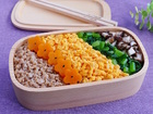 STEP2のフライパンの汚れを軽く拭き取る。Aを全部入れてから中火にかけ菜箸でかき混ぜながら汁が無くなるまで加熱し鶏そぼろを作る。お弁 にんじん(7〜8mmの厚さの輪切り)5枚小松菜(1cmのざく切り)30g生しいたけ(1cm角切り)30gヤマサ ぱぱっとちゃんと これ!うま!!つゆ小さじ1と1/2卵1個ヤマサ ぱぱっとちゃんと これ!うま!!つゆ小さじ1A鶏挽き肉(もも)60gヤマサ ぱぱっとちゃんと これ!うま!!つゆ小さじ1しょうが(おろしたもの)小さじ1/2酒大さじ1ヤマサ 絹しょうゆ小さじ1/3すし飯(又はごはん)適量 調理時間:約25分 カロリー:約505kcal 塩分:約4.5g