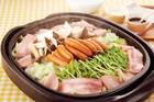 1 鶏肉は3cm長さに切ってせん切りにし、片栗粉をまぶす。 2 白菜は3cm長さに切ってせん切りにする。水菜とにらは3cm長さに切りそろえる。にんじんと大根は繊維に沿って3cm長さのせん切りにする。えのきだけは根元を切ってほぐす。 3 鍋に「地鶏だし塩鍋つゆ」を入れて火にかけ、煮立ったら①の鶏肉と②の白菜・水菜・にら・にんじん・大根・えのきだけをサッとくぐらせて火を通していただく。※鍋つゆが残ったら、冷やご飯茶碗2杯分、卵1個、刻みねぎを加えて雑炊にしてもおいしい。 調理時間:約15分 カロリー:約219kcal