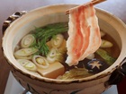 白菜、水菜、豆腐は食べやすい大きさに切る。しいたけは軸を取り、飾り切りにする。長ねぎは根元を切り落とし、食べやすい大きさの斜め切りにする。鍋に「ヤマサ ぱぱっとちゃんと これ!うま!!つゆ」と水を入れて熱し、STEP1~3を入れる。豚ばら肉をしゃぶしゃぶして火が通ったらいただく。