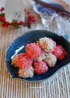 もち米2カップ食紅(赤)少量A豚ひき肉500g玉ねぎ1/4個青ねぎ1本しょうがのすりおろしひとかけらたまご1個小麦粉大さじ1ヤマサ昆布つゆ 白だし大さじ2塩少々辛子適量 カロリー:約303kcal 塩分:約0.6g ヤマサ Happy Recipe