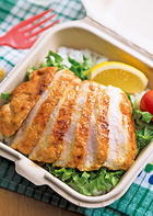 材料(2人分)具材鶏卵(ゆで卵)2個鶏もも肉(1cm厚さのそぎ切り)160g春キャベツ(せん切り)160gレモン(くし切り)1個調味料(a)液みそ 料亭の味小さじ2マヨネーズ大さじ2ヨーグルト大さじ2塩・こしょう少々新玉ねぎ(粗みじん切り)40g塩・こしょう少々薄力粉少々鶏卵(溶く)適宜パン粉適宜サラダ油適宜 調理時間:約30分 カロリー:約459kcal 塩分:約1.3g