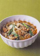 うどん 2玉、鶏ささみ 2本、梅干し 1個、わかめ (乾) 5g、きゅうり 1/4本、白ごま 適量、、ミツカン 追いがつおつゆ2倍 1/2カップ、水 1/2カップ カロリー:約295kcal 塩分:約3.5g ミツカン メニュー・レシピ