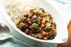 (3)(1)のなす・ピーマンを加えて炒め、A、「味の素®」を加えて軽く炒める。(4)最後に(1)のバジルを加えてサッと混ぜる。器にご飯を盛り、(3)をのせてバジルを飾る。*仕上げに目玉焼きをのせるのもおすすめです。