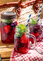 下準備 ・鍋に水を入れ加熱し、沸騰したら ローズヒップ&ハイビスカスティーを入れて煮出し(弱火 約5分)、粗熱を取っておく(ローズヒップ&ハイ ビスカスティー)。 ・いちごはヘタを除いておく。 ・白桃はくし形切りにしておく。 1. ボウルにローズヒップ&ハイビスカスティー・《A》を入れ、漬け込む(冷蔵庫 60分~)。 2. ブルーベリーを加えグラスに注ぎ、ミントの葉を・・・ 調理時間:約15分 カロリー:約48kcal