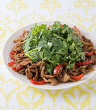 豚肉は大きければ食べやすく切る。パプリカはへたと種を取り、横に幅5mmに切る。玉ねぎは縦に幅5mmに切る。パクチーは洗って根元を切り落とし、長さ1.5〜2cmに切る。小さい器にAの材料を混ぜ合わせる。フライパンにサラダ油小さじ1を強めの中火で熱し、豚肉を入れて2分ほど炒める。肉の色が半分ほど変わったら、玉ねぎ、パプリ・・・ カロリー:約290kcal 塩分:約2.0g